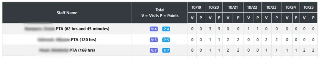 The new Productivity Points Dashboard offers a clear overview of each field clinician’s weekly workload.